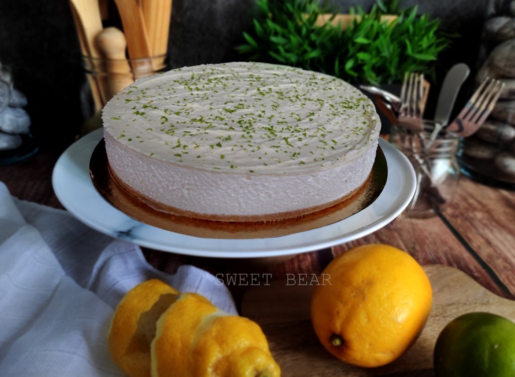 Base de galleta sin trigo y ralladura de limón, mousse de limón con ralladura y zumo de limón y una capa superior de buttercream de limón.